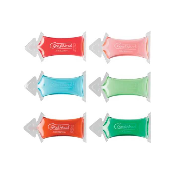 The secret to pure pleasure! Specially formulated to give you that extra boost for oral sex of historical proportions! Just put your lips together and blow with Doc Johnson's GoodHead Gel. Try for yourself and see how this edible oral-sex enhancer makes your foreplay unforgettable! GoodHead gel packed into portable pillow packs. Flavor options include Mint, Watermelon, Cherry, Strawberry, Green Apple, and Cotton Candy.