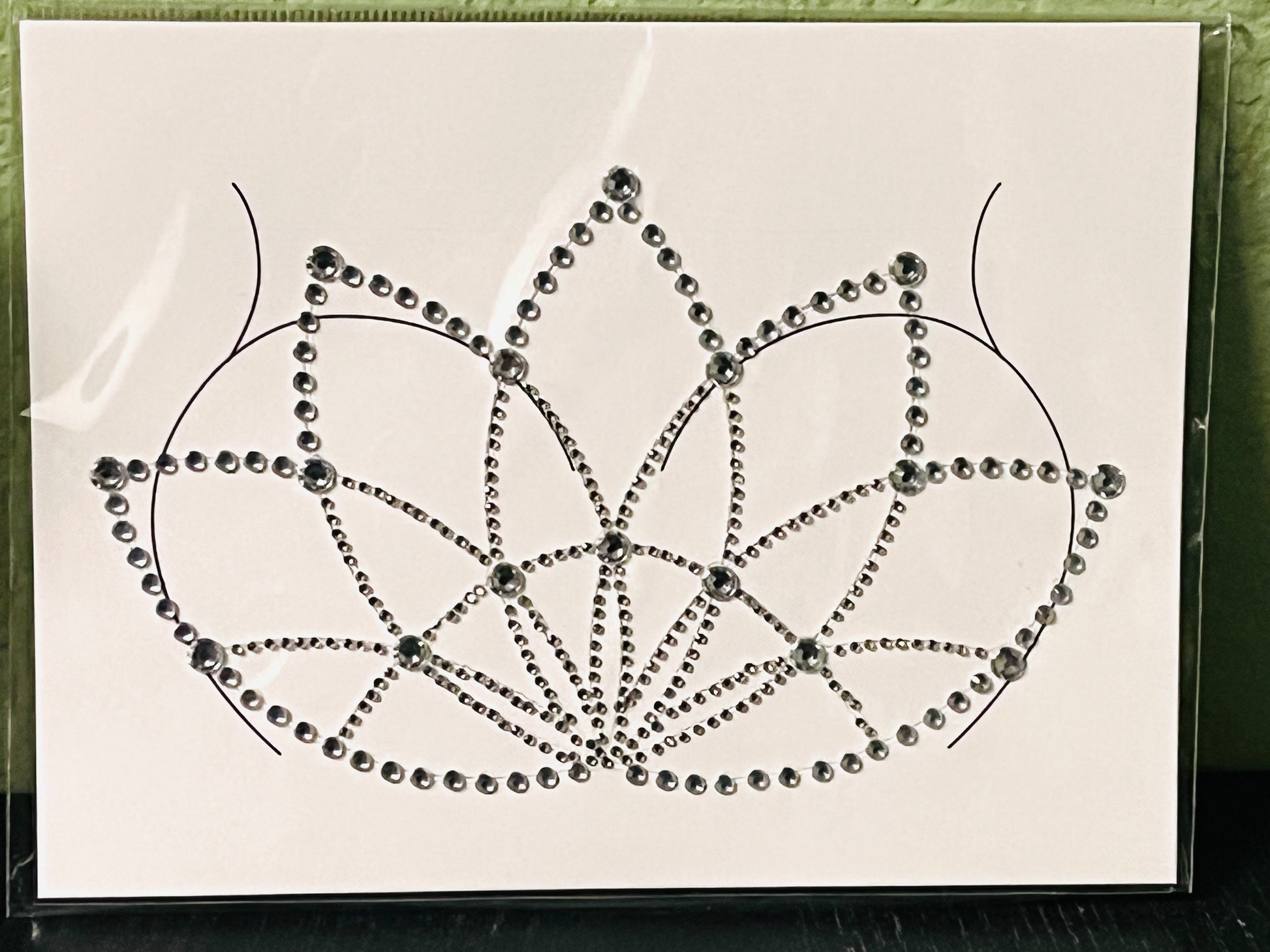 Lotus adhesive face jewels sticker. Theyft.re so easy to apply. Just peel and stick. All jewels come pre-attached so thereft.s no messing around They are designed for one time use but you can reuse for several times if you keep it in good condition. Once the glue has dried out they can be reapplied with eyelash or body glue. Gently peel off the sheet after slightly bending the backing in the opposite direction and press firmly against clean oil-free skin. Ideally face and body should be free of creams lotions and makeup before applying. Gems are acrylic and faceted reflecting light. Jewels only no other items are included!