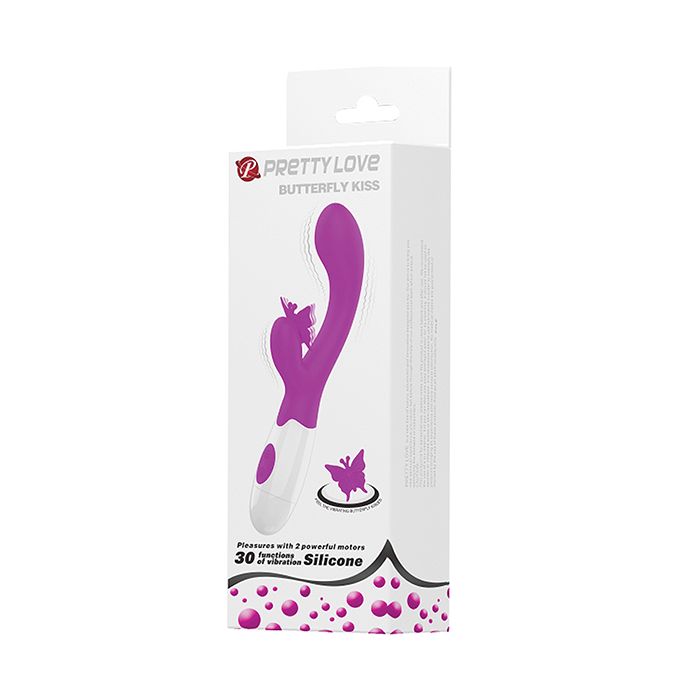 Beautiful and intense! The Pretty Love Butterfly Kiss vibrator can give a powerful stimulation of the vagina and clitoris with its dancing butterfly clitoral stimulation arm. Just feel the tender kiss of butterfly with the rhythm of the vibration. The pronounced vibrator head makes the vulva feel wonderfully full and provides an intense G-spot massage. The vibrator has two powerful motors. It has 30 exciting vibration modes and it only needs two AAA batteries. For intense solo sex that fulfills every fantasy.