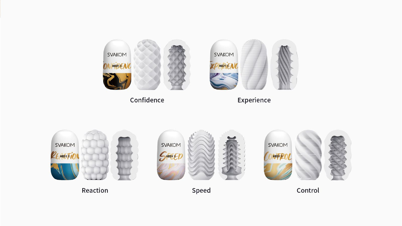 Pleasure knows no limits. Experience the realistic touch of the Hedy X male masturbator, delivering 5 different textures for a unique experience each and every time. (See 2nd Photo for Textures)