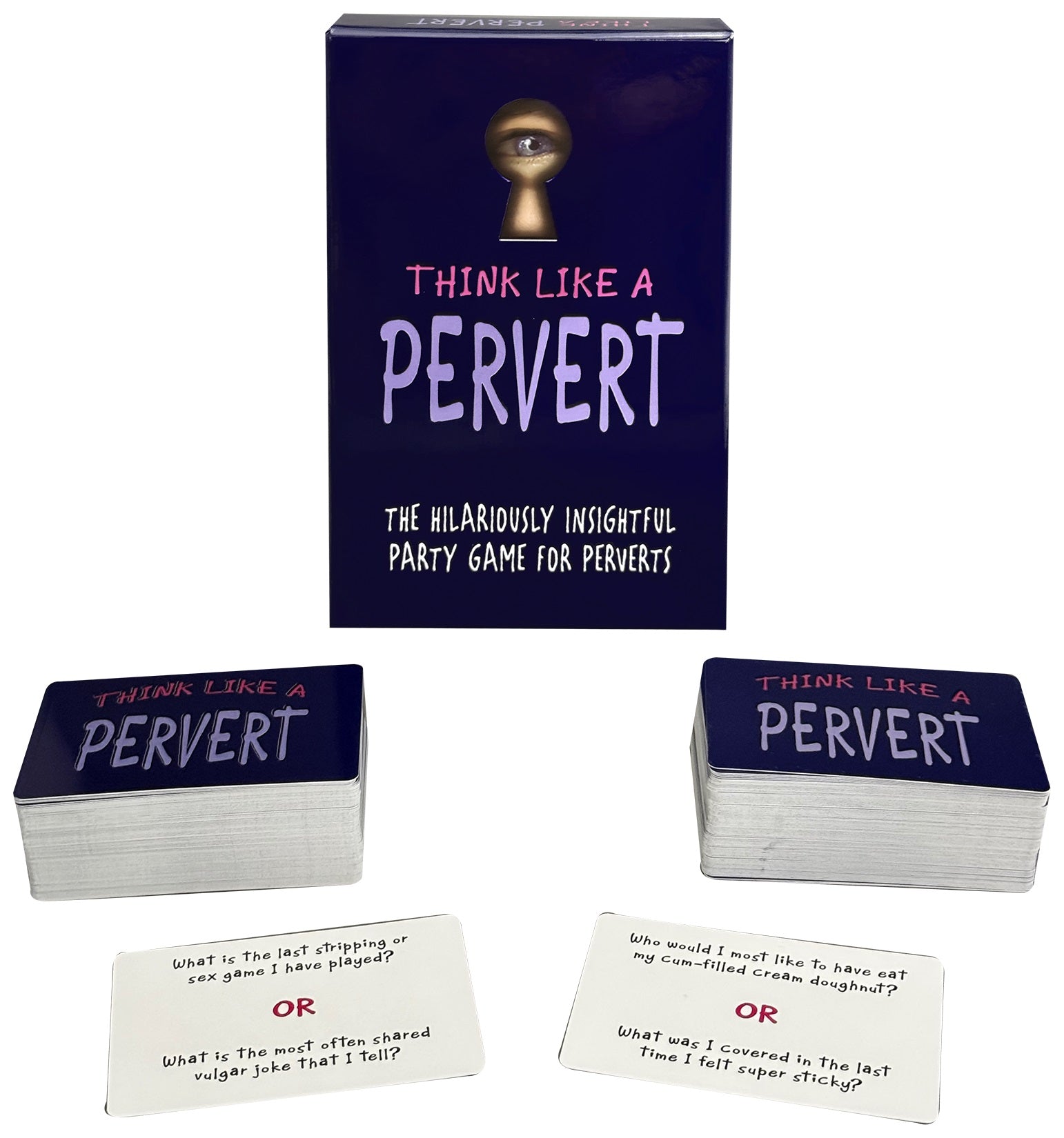 The hilariously insightful party game for perverts. Ask a question, think of your answer, then ask the group. The first pervert who blurts out your answer wins the card as a point. The questions get very perverse and personal! Rules are simple so you can party while you play. Have fun! Includes: 400 Think Like a Pervert Questions (200 cards)